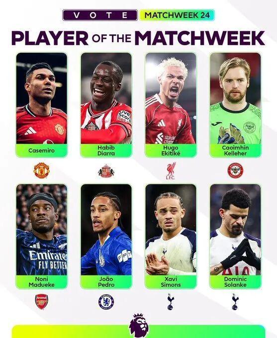 官方:卡塞米罗入围英超周最佳候选名单