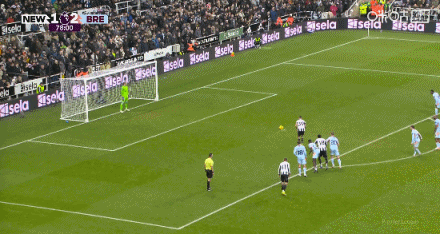 第78分钟,卡约德防守犯规送点,吉马良斯点射命中,纽卡2-2布伦特福德